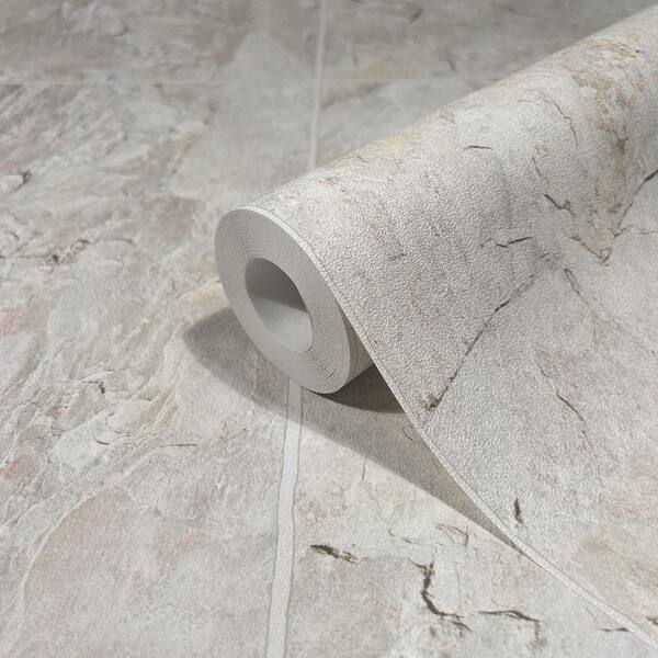 Bricks and More Collection Cream/White Stone Tile Matte Finish Vinyl on Non-Woven Non-Pasted Wallpaper Roll