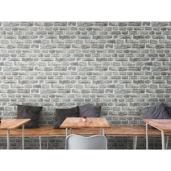 Bricks and More Collection Grey Stone Brick Matte Finish Vinyl on Non-woven Non-pasted Wallpaper Sample