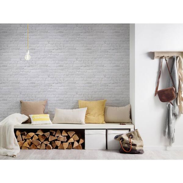 Bricks and More Collection White Contemporary Brick Matte Finish Vinyl On Non-Woven Non-Pasted Wallpaper Roll