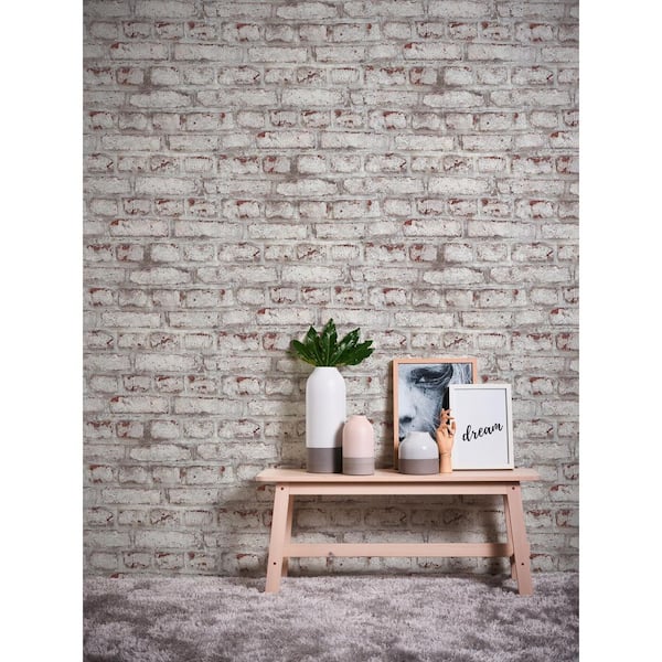 Bricks and More Collection White Distressed Plastered Brick Matte Finish Vinyl on Non-Woven Non-Pasted Wallpaper Sample