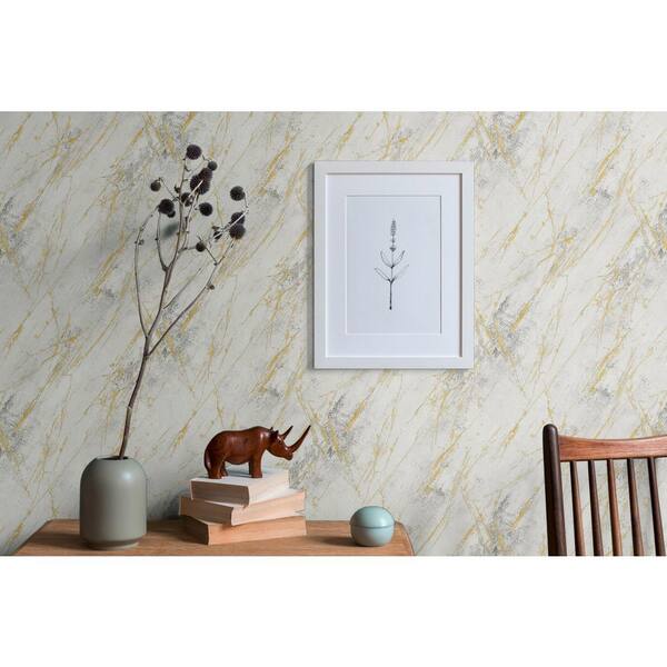 Bricks and More Collection White Metallic Marble Motif Metallic Finish Vinyl on Non-Woven Non-Pasted Wallpaper Roll