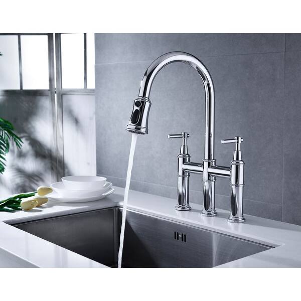 Bridge Kitchen Faucet with Pull-Down Spray head in Chrome