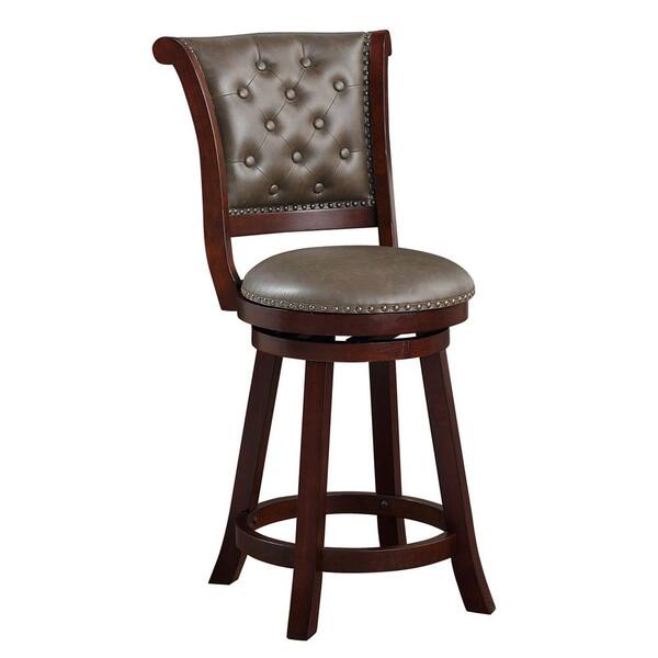 Bridgeport Tufted 39.5 in. Mahogany High Back Wood 24 in. Bar Stool