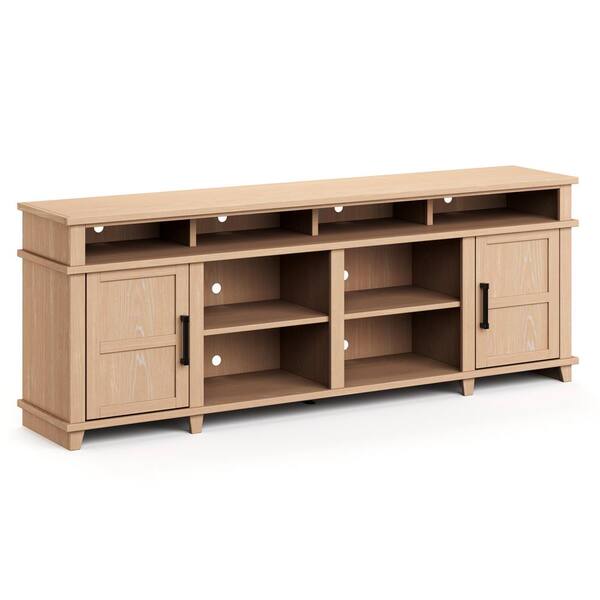 Bridgevine Home 86 in. No Assembly Required Fruitwood Finish Solid Wood TV Stand, Fits TVs up to 95 in.