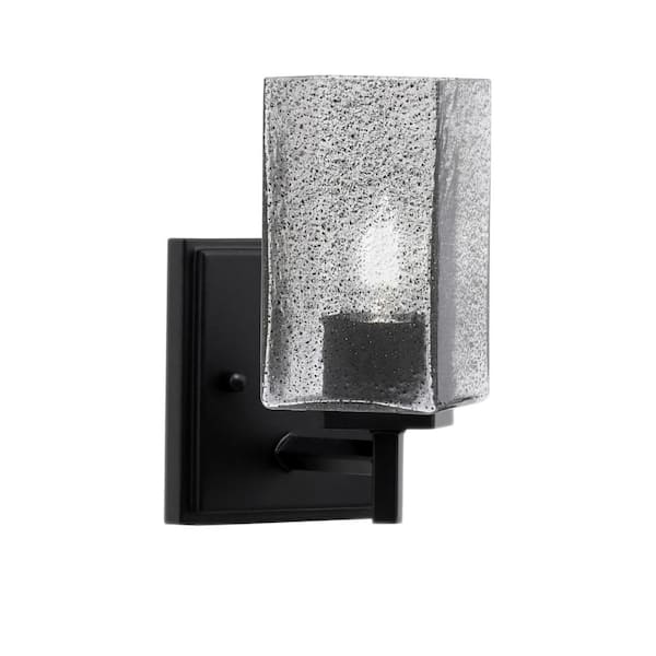 Bridgewater 1 Light Matte Black Wall Sconce with 3.5 in. Square Smoke Bubble Glass Shade, No Bulbs Included