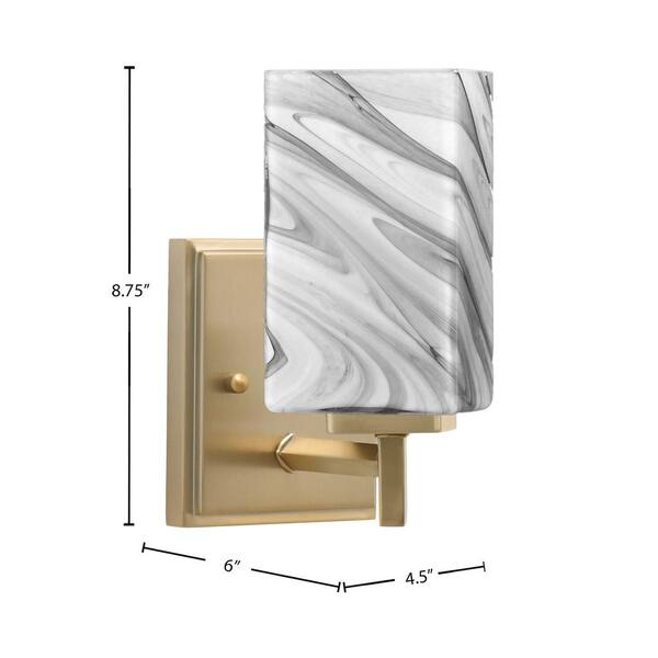 Bridgewater 1 Light New Age Brass Wall Sconce with 3.5 in. Square Onyx Swirl Glass Shade, No Bulbs Included