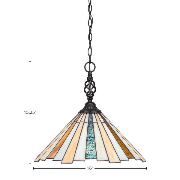 Bridgewater 100-Watt 1-Light Matte Black Shaded Pendant Light with 16 in. Sequoia Art Glass Shade, No Bulb Included