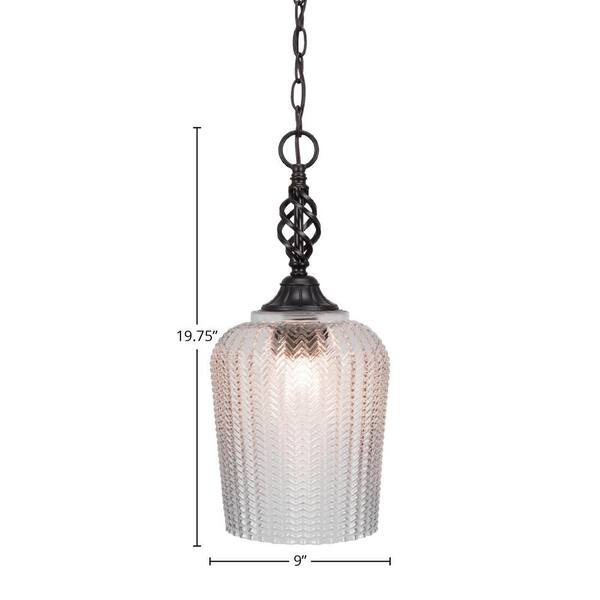 Bridgewater 100-Watt 1-Light Matte Black Shaded Pendant Light with 9 in. Clear Textured Glass Shade, No Bulb Included