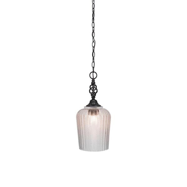 • Matte Black Pendant Light with Clear Textured Glass Shade