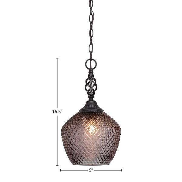 Bridgewater 100-Watt 1-Light Matte Black Shaded Pendant Light with 9 in. Smoke Textured Glass Shade, No Bulb Included