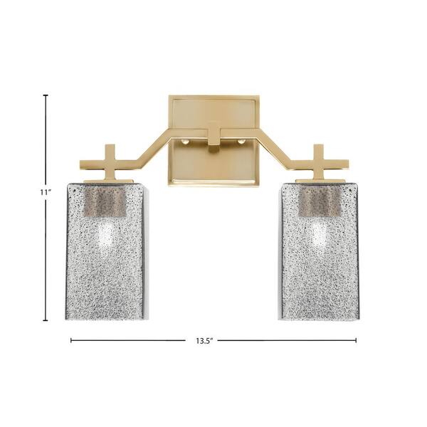 Bridgewater 13.5 in. 2 Light Vanity Light New Age Brass with 3.5 in. Square Smoke Bubble Glass Shades, No Bulbs Included