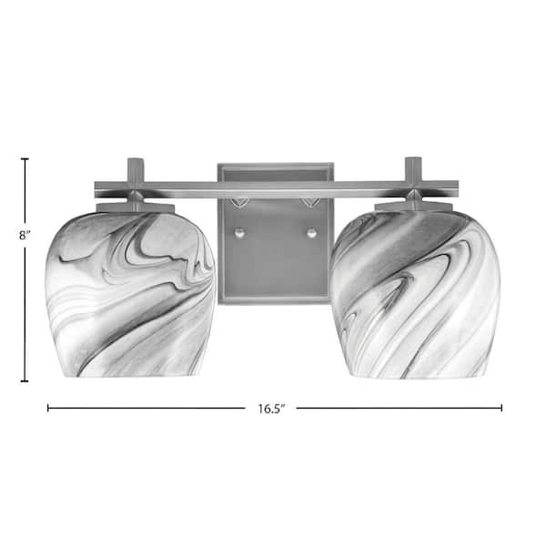 Bridgewater 16.5 in. 2 Light Vanity Light, Graphite with 6 in. Onyx Swirl Glass Shades. No bulbs included