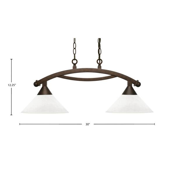 Bridgewater 2 Light Bronze Linear Chandelier, Any Room with 10 in. White Muslin Glass Shades, no Bulbs Includes