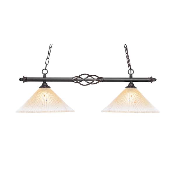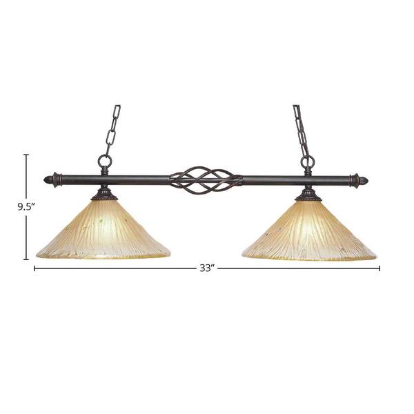 Bridgewater 2-Light Dark Granite Billiard Light with 12 in. Cayenne Linen Glass Shades, no bulbs included