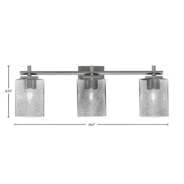 Bridgewater 24.5 in. 3 Light Vanity Light Graphite 3.5 in. Square Smoke Bubble Glass Shades, No Bulbs Included