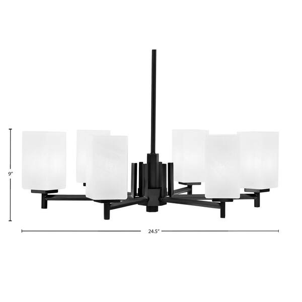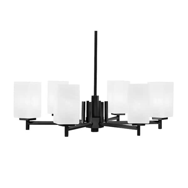 Bridgewater 24.5 in. 6-Light Matte Black Chandelier with 3.5 in. Quare White Marble Glass Shades, No Bulbs Included
