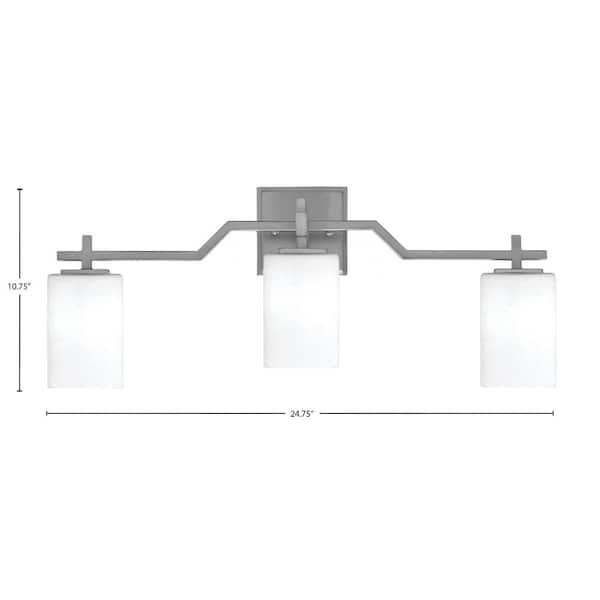 Bridgewater 24.75 in. 3 Light Vanity Light Graphite with 4 in. White Muslin Glass Shades, No Bulbs Included