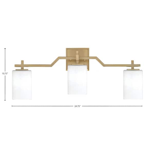 Bridgewater 24.75 in. 3 Light Vanity Light New Age Brass with 4 in. White Muslin Glass Shades, No Bulbs Included