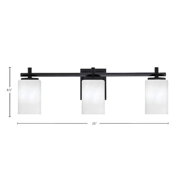Bridgewater 25 in. 3 Light Vanity Light Matte Black with 4 in. White Marble Glass Shades, No Bulbs Included