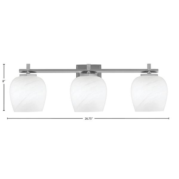 Bridgewater 26.75 in. 3 Light Vanity Light Graphite with 6 in. White Marble Glass Shades, No Bulbs Included