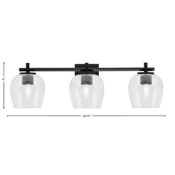 Bridgewater 26.75 in. 3 Light Vanity Light Matte Black with 6 in. Clear Bubble Glass Shades, No Bulbs Included