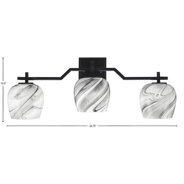 Bridgewater 26.75 in. 3 Light Vanity Light Matte Black with 6 in. Onyx Swirl Glass Shades, No Bulbs Included
