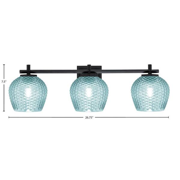 Bridgewater 26.75 in. 3 Light Vanity Light Matte Black with 6 in. Turquoise Textured Glass Shades, No Bulbs Included