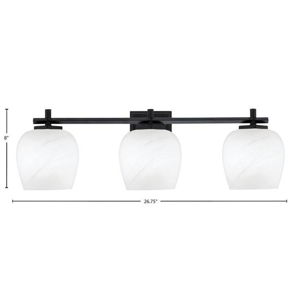 Bridgewater 26.75 in. 3 Light Vanity Light Matte Black with 6 in. White Marble Glass Shades, No Bulbs Included