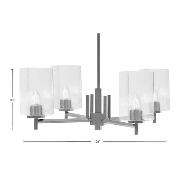 Bridgewater 26 in. 4 Light Graphite Chandelier with 4 in. Square Clear Bubble Glass Shades, No Bulbs Included