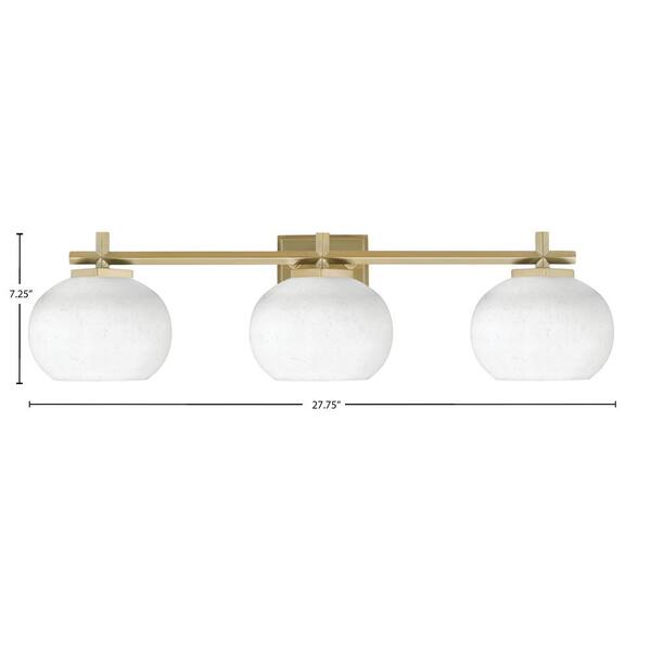 Bridgewater 27.75 in. 3 Light Vanity Light New Age Brass with 7 in. White Muslin Glass Shades, No Bulbs Included