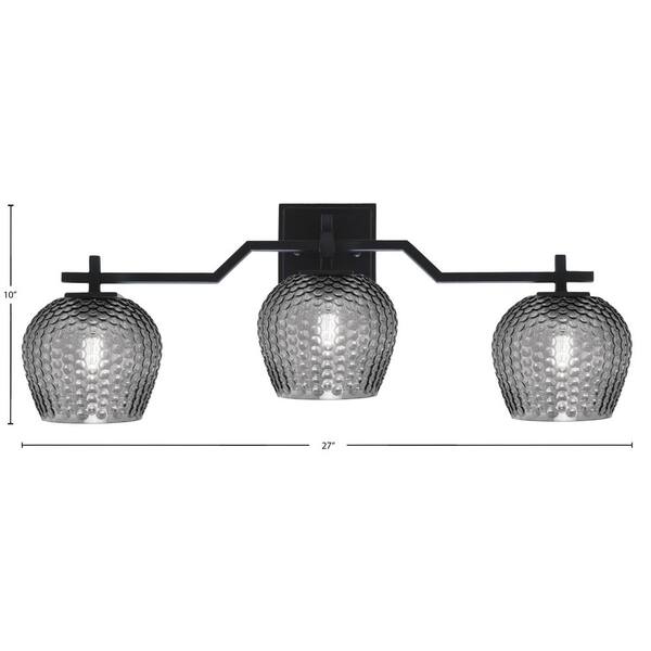 Bridgewater 27 in. 3 Light Vanity Light Matte Black with 6 in. Smoke Textured Glass Shades, No Bulbs Included