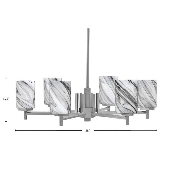 Bridgewater 28 in. 6 Light Graphite Chandelier with 4 in. Onyx Swirl Glass Shades, No Bulbs Included
