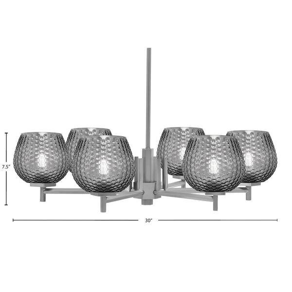 Bridgewater 30 in. 6 Light Graphite Chandelier with 6 in. Smoke Textured Glass Shades, No Bulbs Included