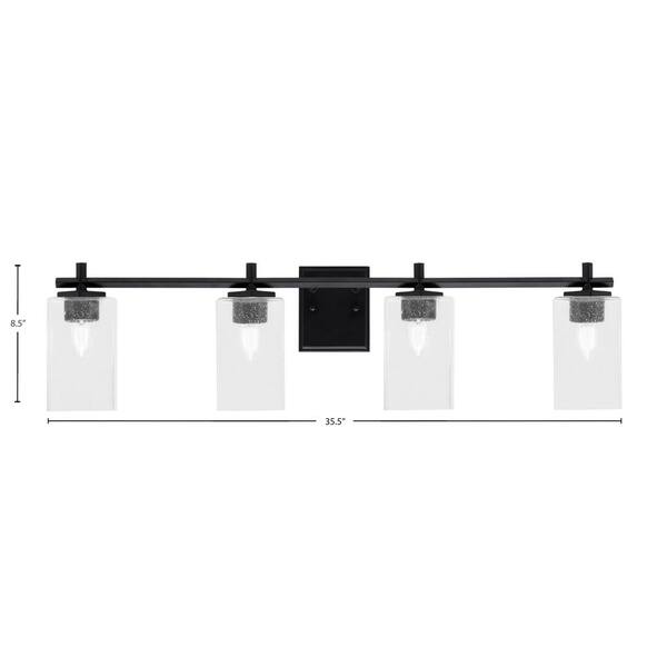 Bridgewater 35.5 in. 4 Light Vanity Light Matte Black with 4 in. Square Clear Bubble Glass Shades, No Bulbs Included
