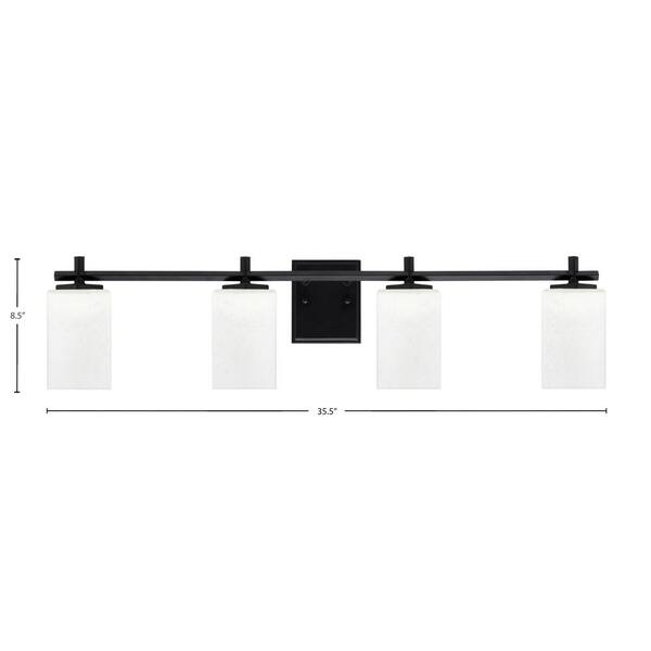 Bridgewater 35.5 in. 4 Light Vanity Light Matte Black with 4 in. Square White Muslin Glass Shades, No Bulbs Included