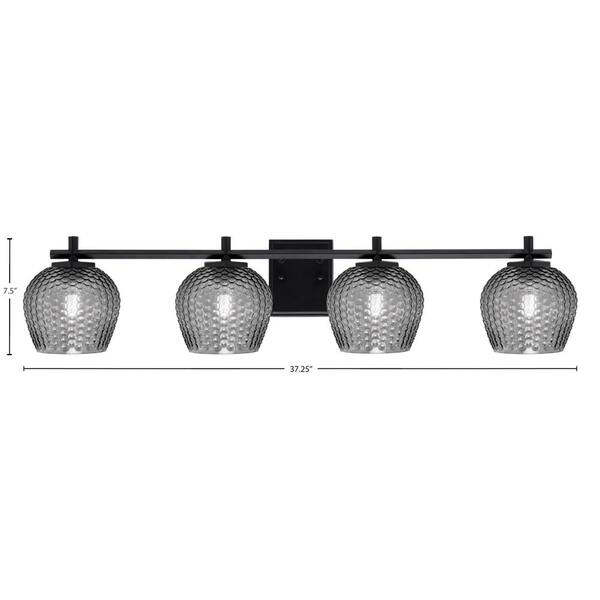 Bridgewater 37 in. 4 Light Vanity Light Matte Black with 6 in. Smoke Textured Glass Shades, No Bulbs Included