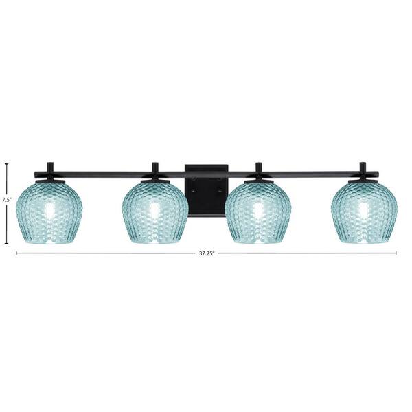 Bridgewater 37 in. 4 Light Vanity Light Matte Black with 6 in. Turquoise Textured Glass Shades, No Bulbs Included
