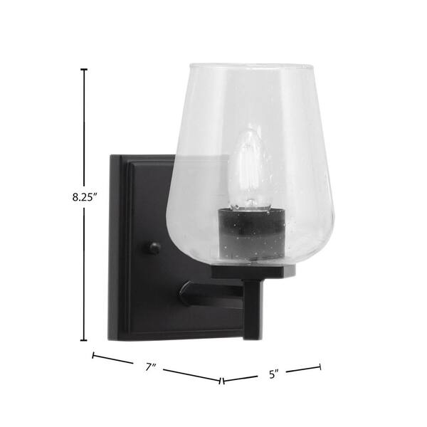 Bridgewater 5 in. 1 Light Matte Black Wall Sconce with 5 in. Clear Bubble Glass Shade, No Bulb Included