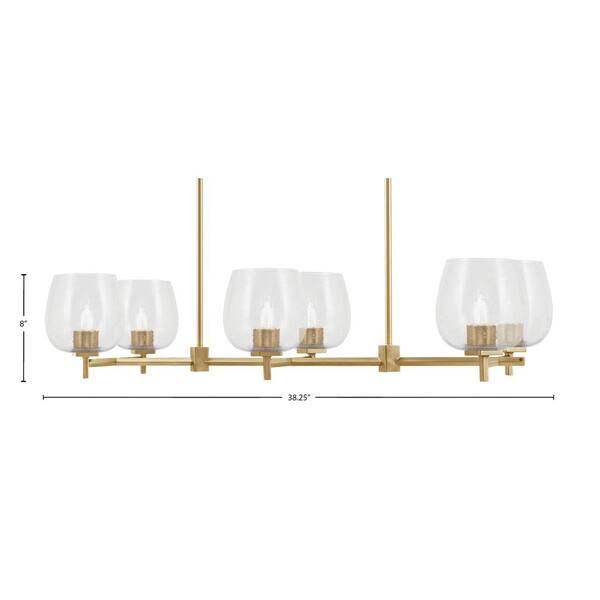 Bridgewater 6 Light Brass Linear Chandelier for Kitchen Island with 6 in. Clear Bubble Glass Shades, No Bulbs Included