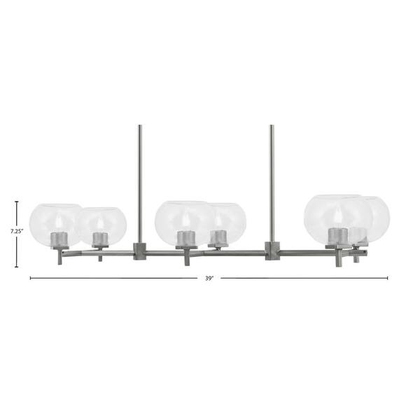 Bridgewater 6 Light Graphite Linear Chandelier for Kitchen Island with 7" Clear Bubble Glass Shades, No Bulbs Included