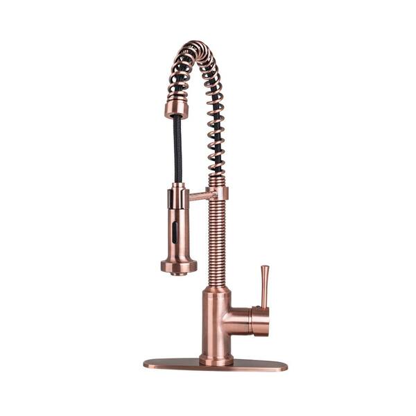 Residential Single-Handle Spring Coil Pull-Out Sprayer Kitchen Faucet with Matching Deck Plate in Antique Copper