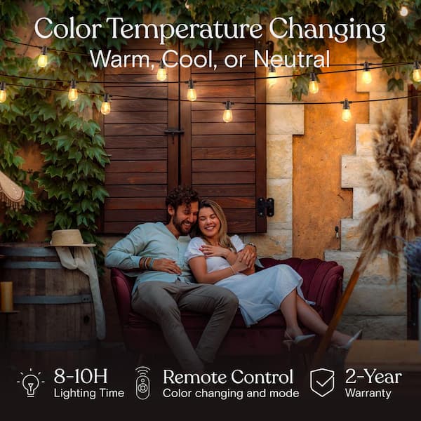 Ambience Pro 15-Light 48ft Outdoor Color Changing Solar Powered 4W 2700K Warm White LED S14 Edison Bulb String Lights