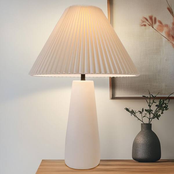 • Modern cement table lamp with white fabric pleated shade