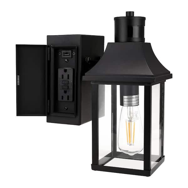 1-Light 10 in. Black Motion Sensor Dusk to Dawn Outdoor Wall Sconce with Clear Glass and USB