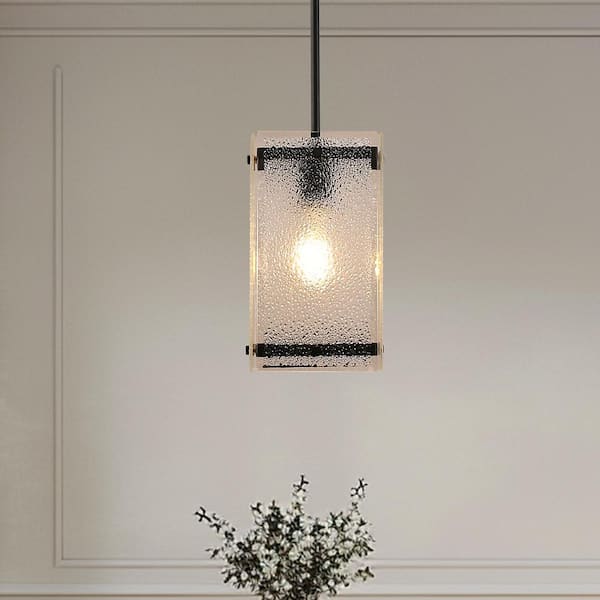 1-Light Black Island Lantern Rectangle Clear Glass Chandelier for Dining Room Kitchen Island with No Bulbs Included