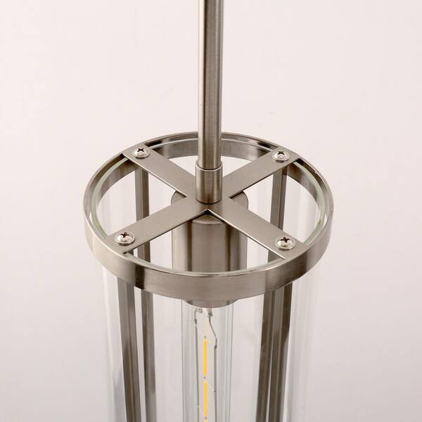 1-Light Nickel Pendant Light Modern Industrial Fixture for Kitchen Island and Dining Room with Clear Glass Shade