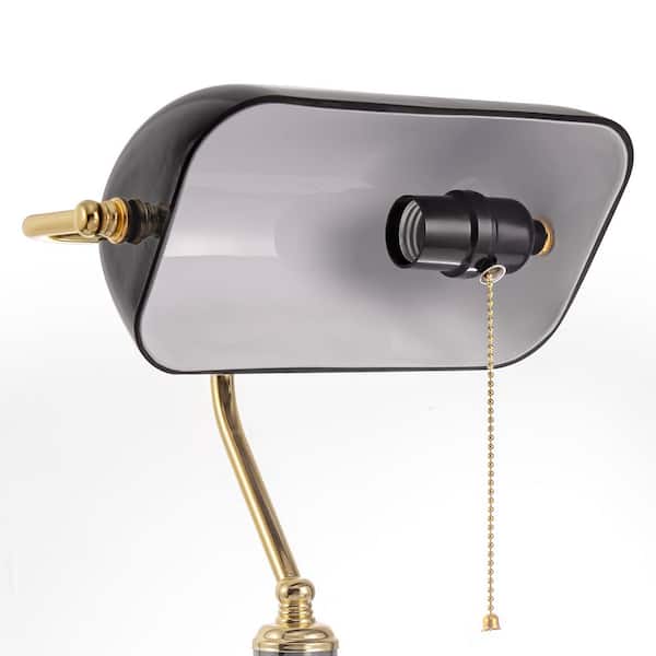 15 in. Black Glass Desk Task and Reading Lamp for Study with Gold Trim and Pull Chain Switch Adjustable Desk Light