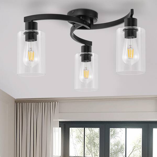 16.5 In. 3-Light Matte Black Semi-Flush Mount Lighting with Clear Glass and No Bulbs Included 1-Pack