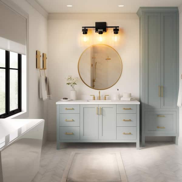 16 in. 3-Light Modern Vanity Light - Matte Black with Clear Glass for Bathroom
