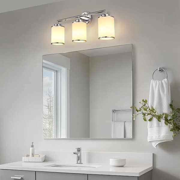17 In. 3-Light Chrome Vanity Light for Vanity or Mirror in Bathroom with Frosted Glass Shades Stylish Modern Wall Sconce